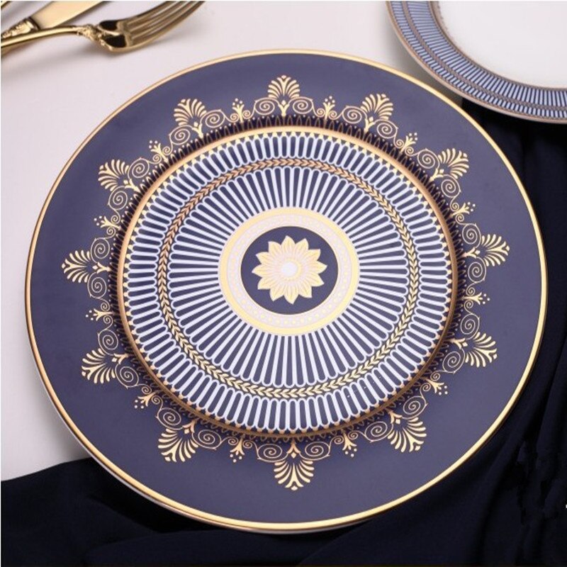 Assiette à Steak élégante en porcelaine, en os bleu, en céramique, plat à dîner, tasse à café, soucoupe, vaisselle familiale, décoration de la maison