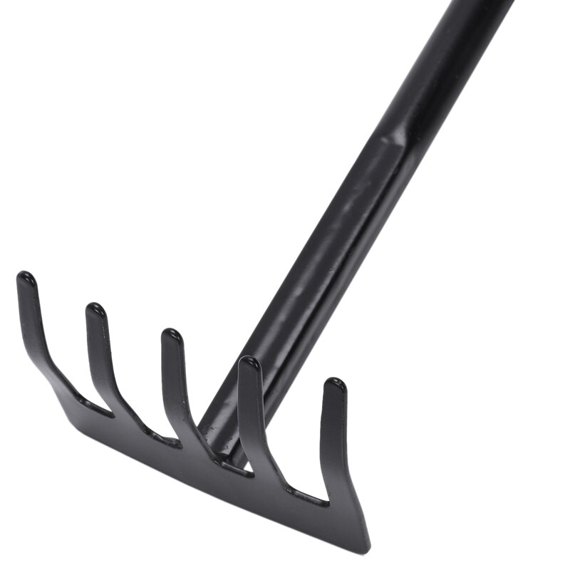 Outil de main de râteau de jardin de pelouse de tête en métal de poignée antidérapante noire 12.1"